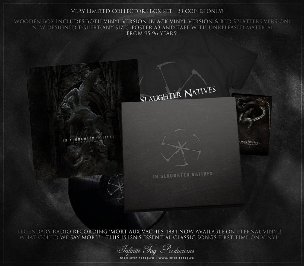 Limited box-set in a wooden box, that includes both vinyl version (black vinyl version & red splatters version); a t-shirt with new design; A3 poster and tape with exclusive unreleased tracks. Tape version of album includes unreleased material from '95-'96. Limited to 23 copies!